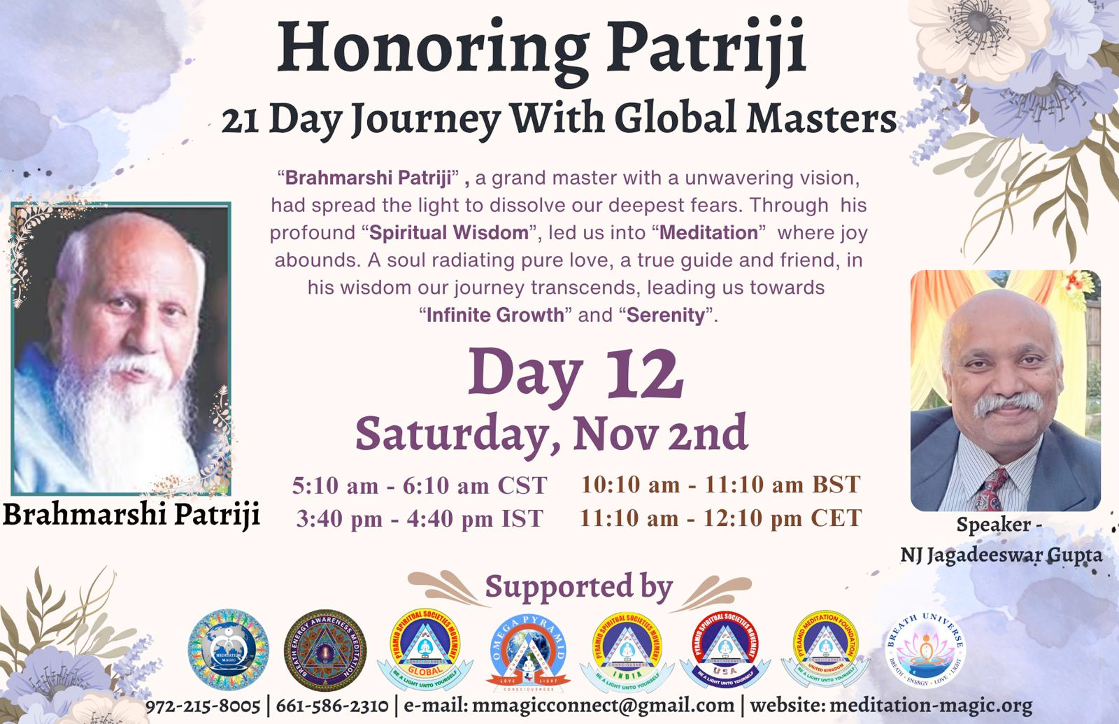 Embark on a transformative 21-day journey as spiritual masters from around the world share their personal experiences with Patriji, the founder of the Pyramid Spiritual Societies Movement. Starting on October 17th, this series will feature global leaders who have been deeply influenced by Patriji’s wisdom and teachings. Listen to their inspiring stories of spiritual growth, healing, and awakening, and discover how Patriji’s vision has touched countless lives.