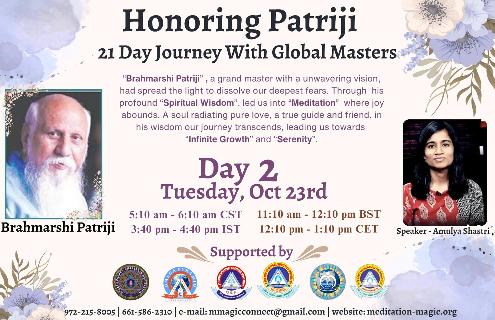 Embark on a transformative 21-day journey as spiritual masters from around the world share their personal experiences with Patriji, the founder of the Pyramid Spiritual Societies Movement. Starting on October 17th, this series will feature global leaders who have been deeply influenced by Patriji’s wisdom and teachings. Listen to their inspiring stories of spiritual growth, healing, and awakening, and discover how Patriji’s vision has touched countless lives.