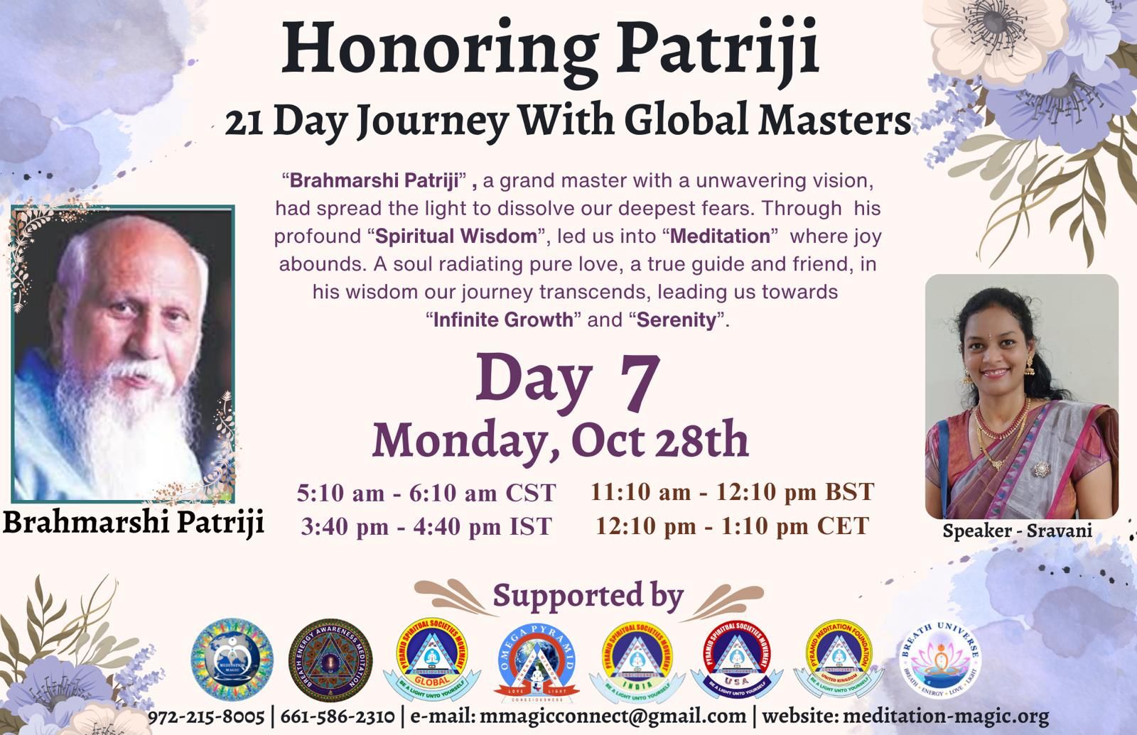 Embark on a transformative 21-day journey as spiritual masters from around the world share their personal experiences with Patriji, the founder of the Pyramid Spiritual Societies Movement. Starting on October 17th, this series will feature global leaders who have been deeply influenced by Patriji’s wisdom and teachings. Listen to their inspiring stories of spiritual growth, healing, and awakening, and discover how Patriji’s vision has touched countless lives.