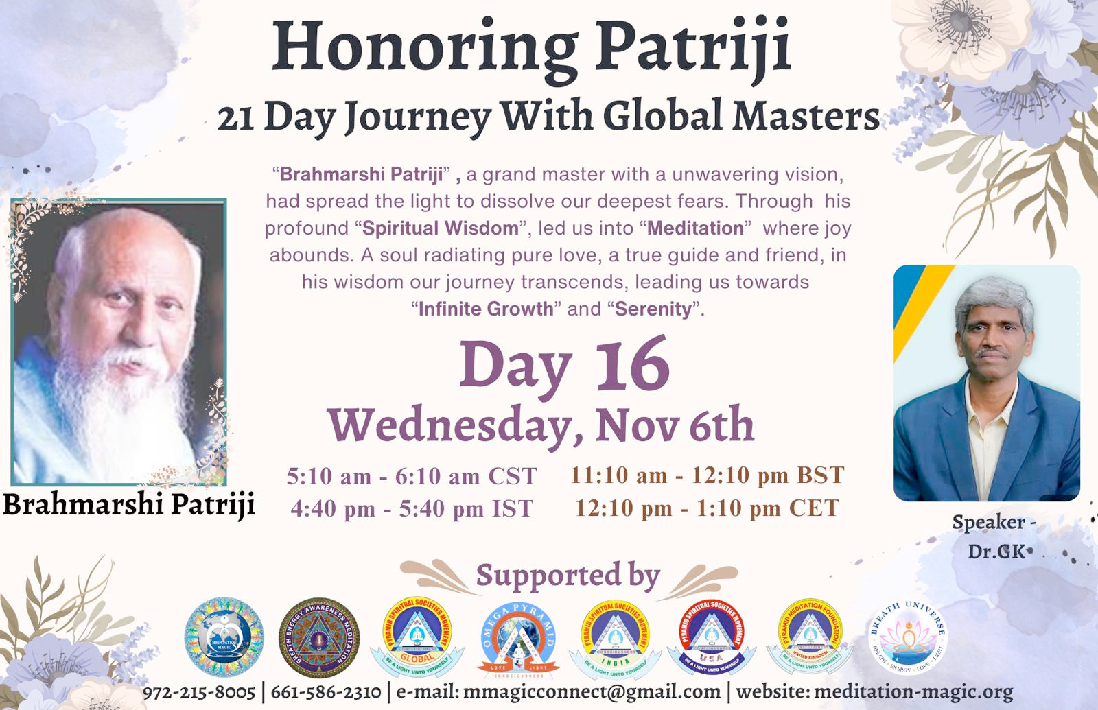 Embark on a transformative 21-day journey as spiritual masters from around the world share their personal experiences with Patriji, the founder of the Pyramid Spiritual Societies Movement. Starting on October 17th, this series will feature global leaders who have been deeply influenced by Patriji’s wisdom and teachings. Listen to their inspiring stories of spiritual growth, healing, and awakening, and discover how Patriji’s vision has touched countless lives.