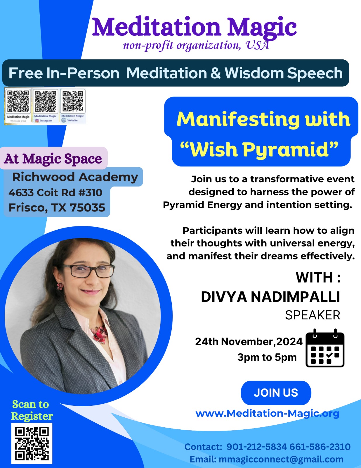 We will have a pyramid/meditation masters sharing their experiences and wisdom sharing on spiritual, mindfulness concepts.
