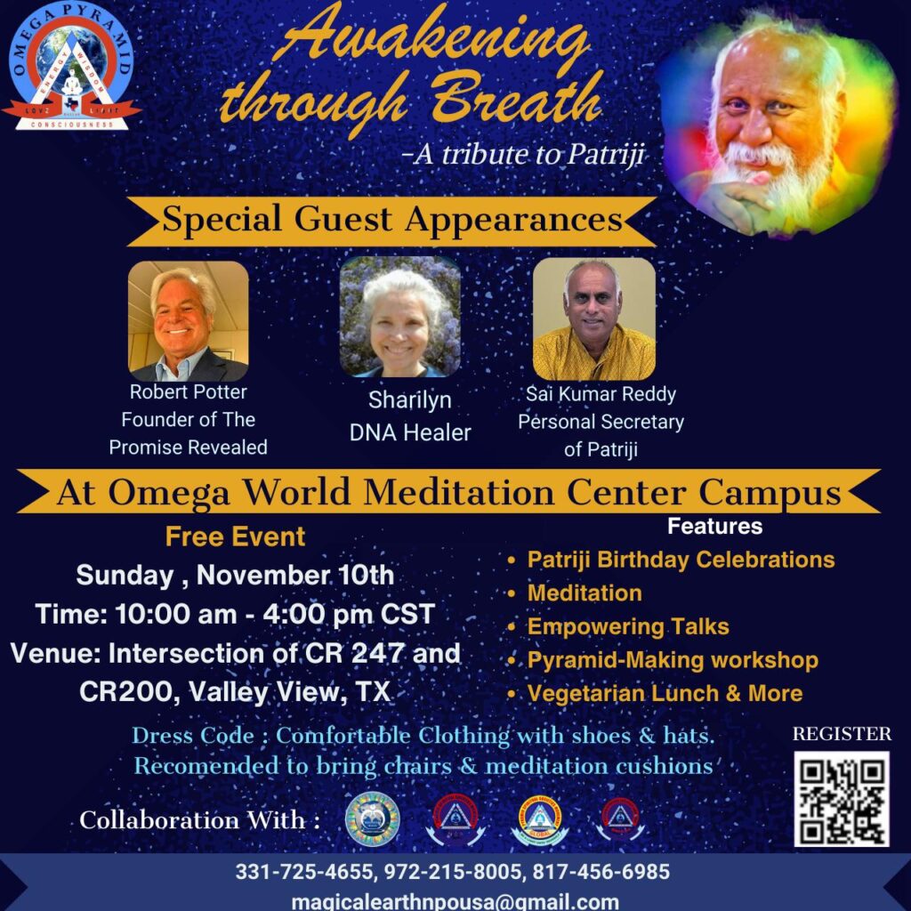 Please join us on November 10th for “Awakening through Breath,” a tribute to Brahmarshi Patriji.